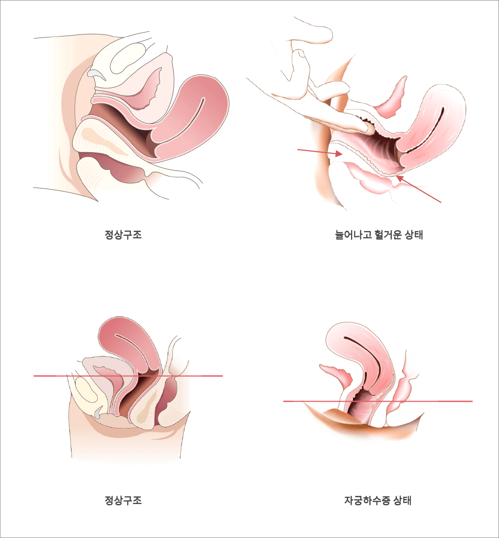 질이 늘어나 방광이나 직장이 튀어 나와 보이고 자궁이 많이 내려오신 여성분