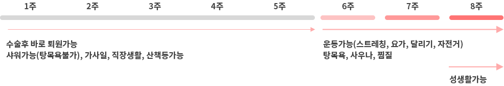 - 가사일, 직장생활, 산책과 같은 일상생활은 바로 가능 (골프등 운동은 일주일후부터 가능)