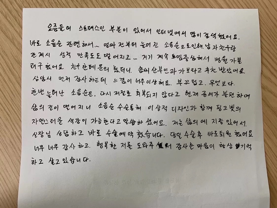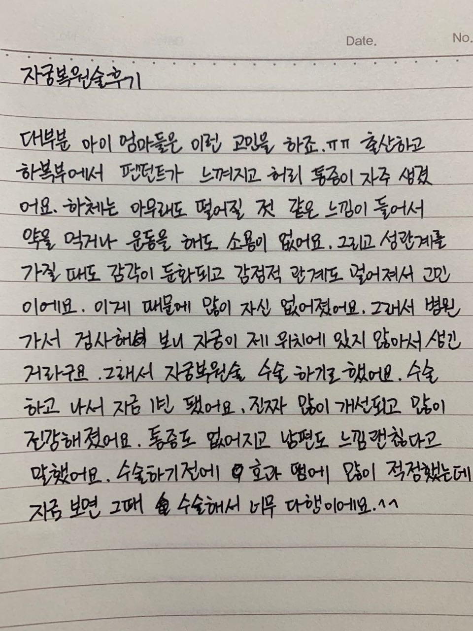 솜씨리얼자필후기 | 솜씨좋은산부인과 | 처리완료 |